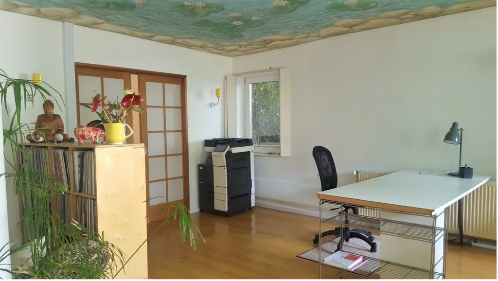 Da wir selbst auch in diesem Raum arbeiten und wir uns auch bei der Arbeit wie zu Hause fühlen möchten, findet ihr eine gemütlich eingerichtete Umgebung vor. Auch der Plattenspieler ist ab und an in Benutzung.