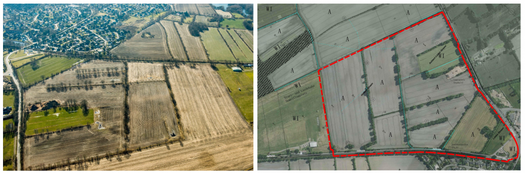 Plangebiet (links die Kieler Straße/Foto Herr Maaß, Wahlstedt)